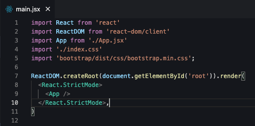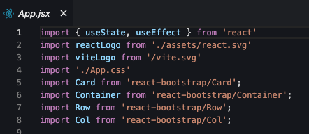 From Stackblitz, add lines 5-8 of App.jsx, import React components Card, Container, Row, Col.